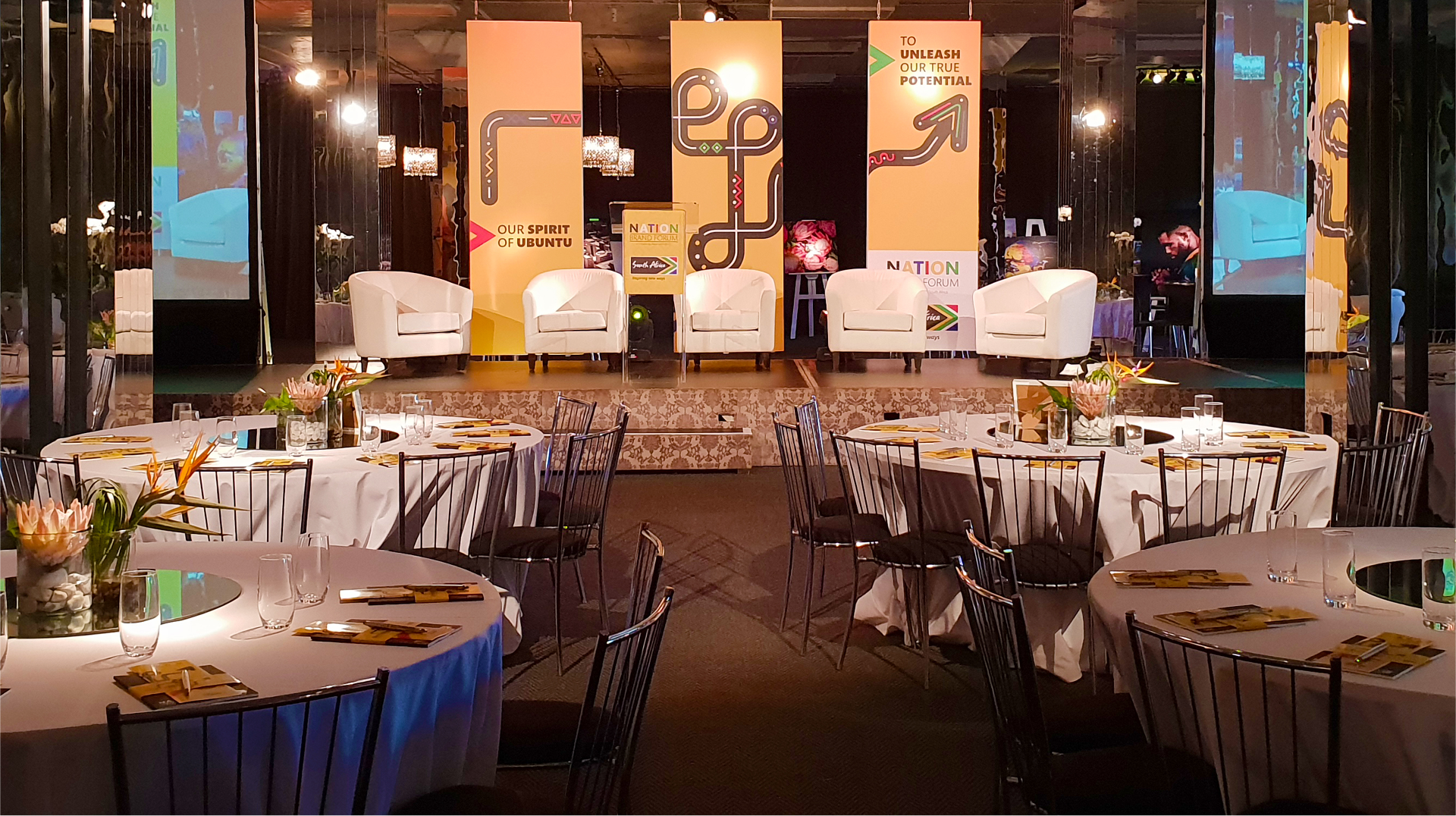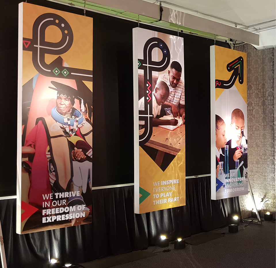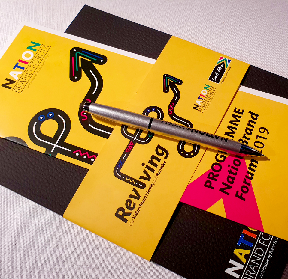 We received an exciting brief to create a brand identity for a flagship event called The Nation Brand Forum. The identity we developed was based on the pathway or path to reviving our country’s identity. The pathway showed the rigorous path travelled and the exciting forward projection and outlook. The creative was influenced by visual cues from the 11 cultures common in South Africa, to create a bold visual system that allowed for modular application.